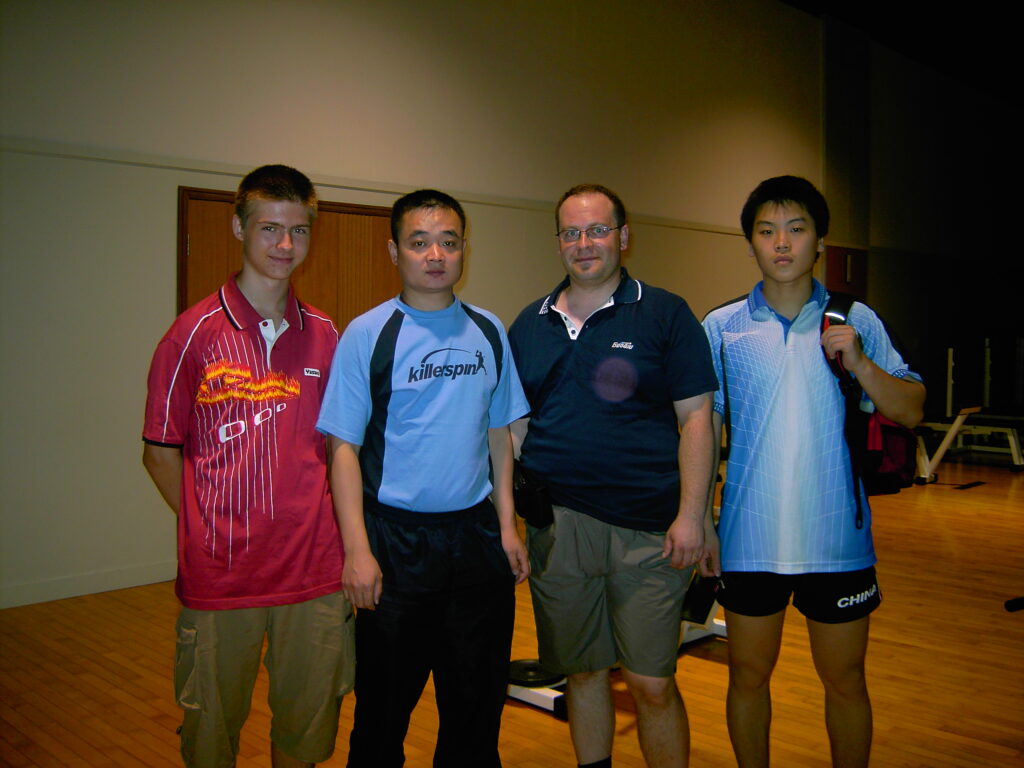 Von links nach rechts: Andreas Eichner (deutscher Nachwuchsspieler), Liu GuoDong (Chinesischer Meistertrainer, Nationaltrainer von Singapur, Bruder des chinesischen Nationaltrainers Liu GuoLiang), Gert Rupinski, Hao Shuai(mehrfacher Mannschaftsweltmeister).